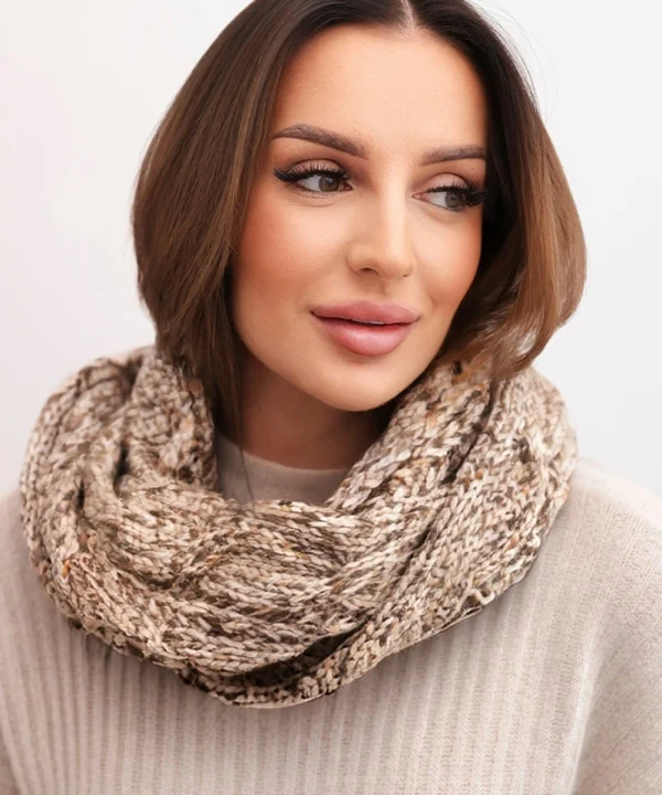 Komin damski wełniany melanżowy gruby otulacz na zimę KN24 ciemno beżowy
